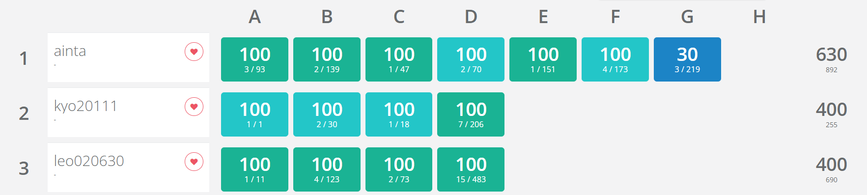 E와 F는 재밌어 보이는데 시간이 없어 보지 못했다.