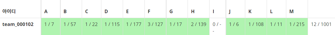 풀이는 보자마자 모두가 안 E의 코딩을 H AC 직후부터 시작했는데, 구현을 뭔가 잘못한 것인지 slah007 -> qjatn0120으로 코딩을 바꾼 후에야 맞을 수 있었다. 알고 보니, slah007 선배의 코딩은 n과 m만 바꾸면 맞는 코드였다.