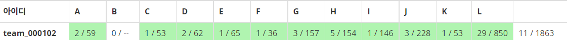 H를 그냥 짜면 될 것 같길래 짰더니 틀려서 qjatn0120 선배에게 넘기고 다시 뒤로 돌아와 I를 잡았다. qjatn0120 선배는 H를 빠르게 미신 후 L과의 사투를 선언했다.